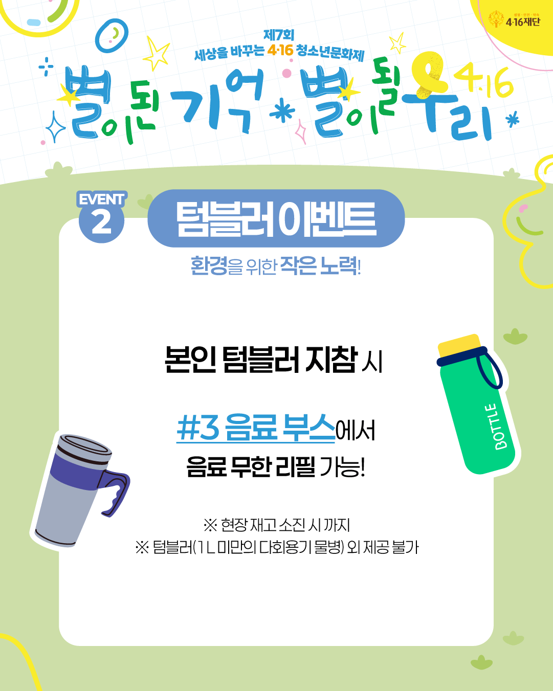 세상을 바꾸는 4·16 청소년문화제에 텀블러를 지참하고 와주세요 :)
